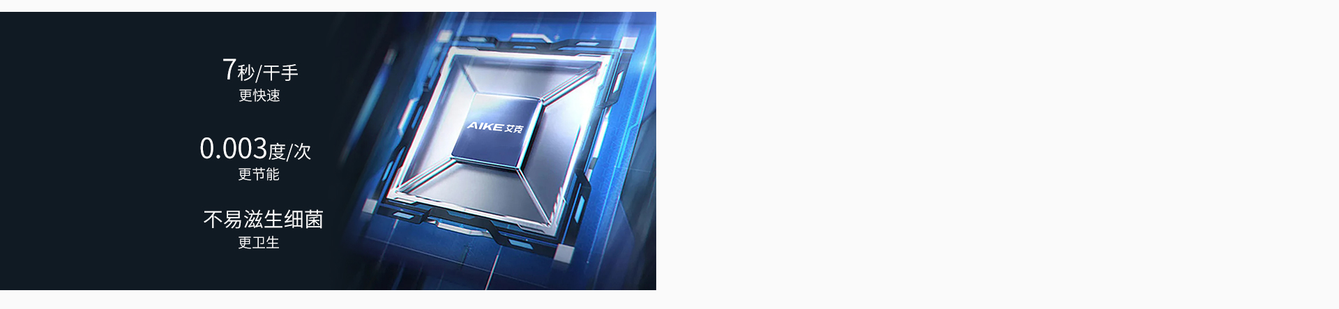 105m/s高速气流迅速刮掉手上水珠,7秒彻底干手,不做卫生间里的摆设,有效抑制手部细菌滋生